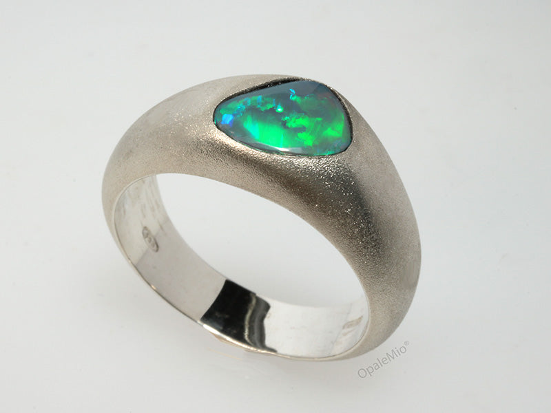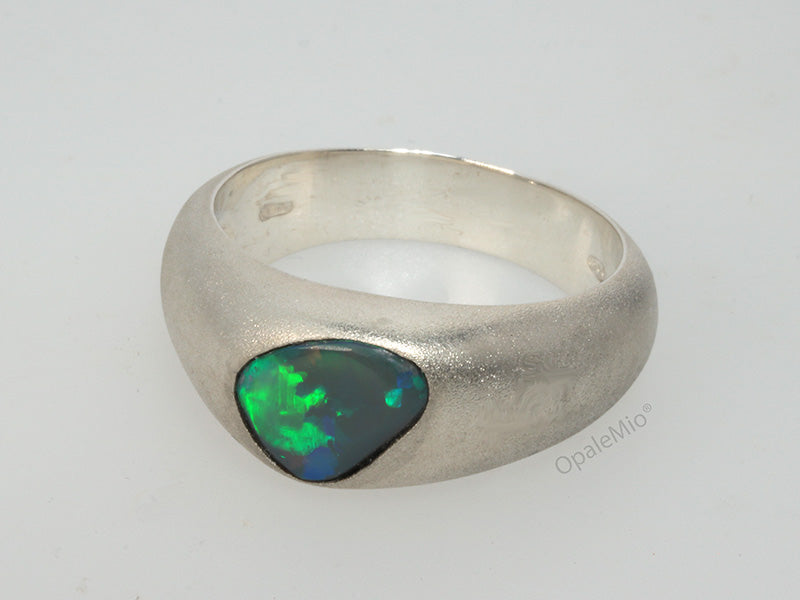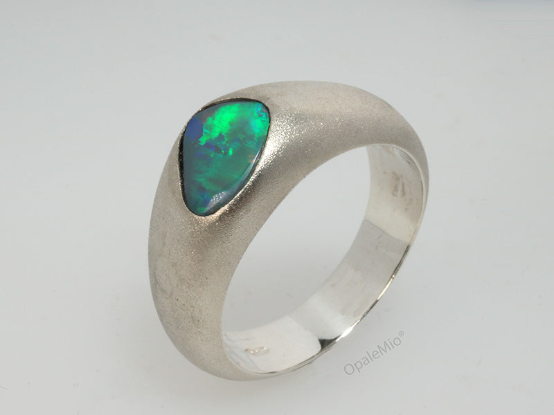 Anello in argento 925. finitura esterna sabbiata e interna lucida con opale crystal scuro australiano dai riflessi e colori molto intensi. Misura 22. Lavorazione fatta in Italia.