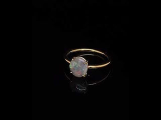 Anello in oro 18k con un brillante opale scuro semiblack australiano dai colori densi ed intensi e con un fantastico gioco di riflessi. Misura italiana 14