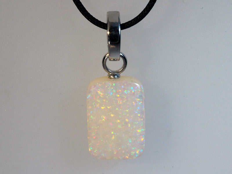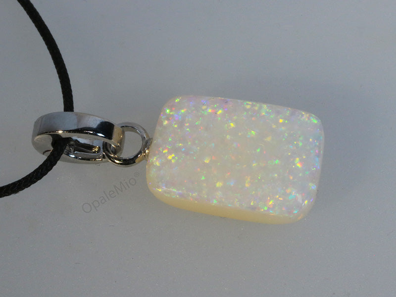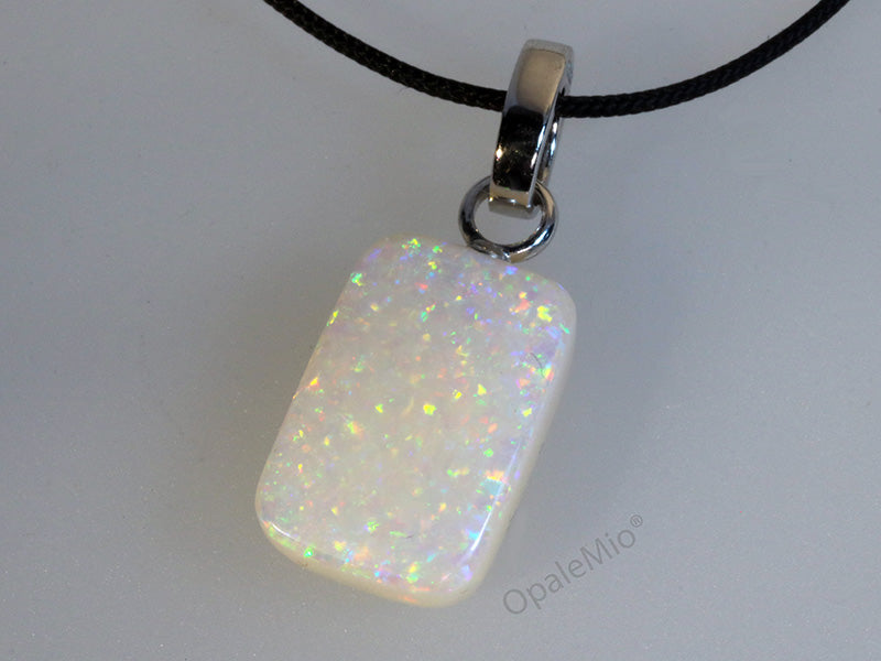 Pendente e charm in Argento 925 e opale bianco che evidenzia uno splendido quanto vivido gioco di colori sempre molto evidenti.