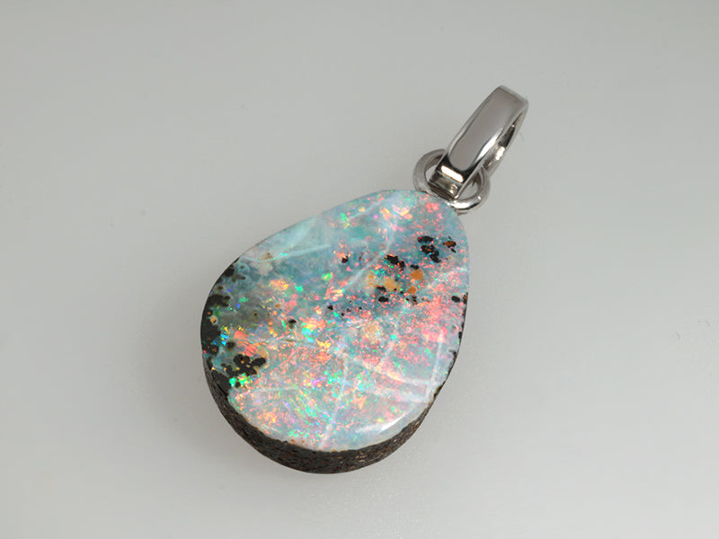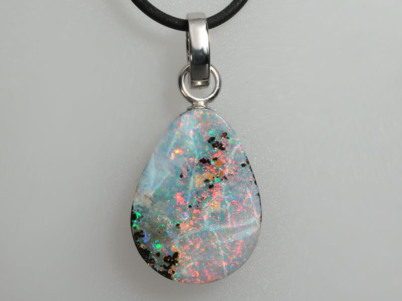 Pendente con terminale in argento 925 e opale boulder australiano taglio goccia dai colori vivaci e brillanti . Un pratico apri chiudi a molla permette di spostare velocemente il pendente