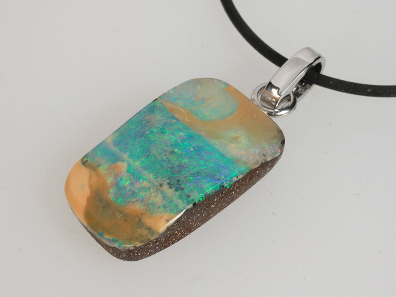 Info: L'opale boulder o opale massivo è caratterizzato da uno strato di opale prezioso che aderisce alla roccia ospite. I colori possono essere estremamente vivi e brillanti, mentre nella classificazione l'opale boulder è identificato con Solido 2. Le miniere di opale boulder sono sparse nell'outback del Queensland e forniscono la totalità di questa preziosa gemma.