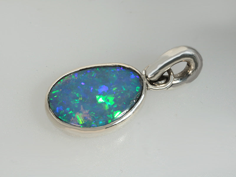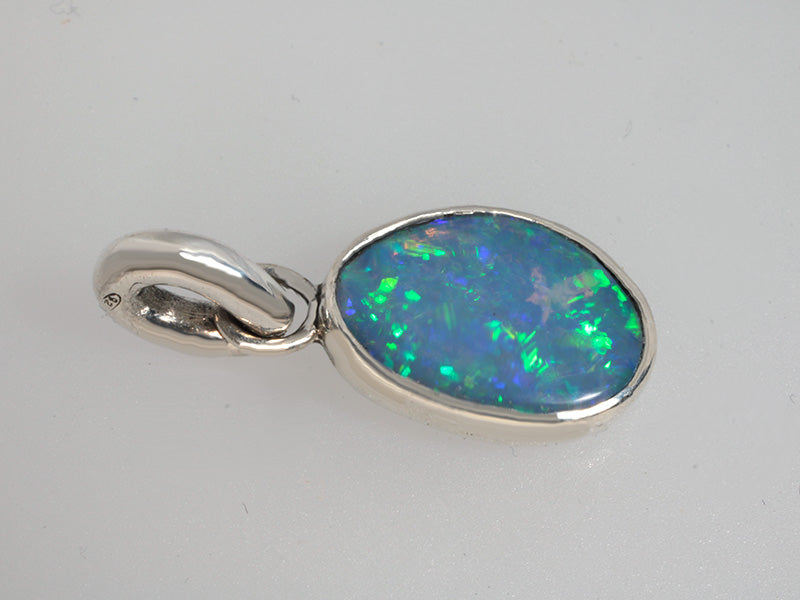 Pendente raffinato con opale crystal brasiliano caratterizzato da giochi di colore molto vivaci e brillanti riflessi. La gemma è montata in argento 935 argentium, una lega d'argento ipoallergenica e particolarmente resistente all'ossidazione, garantendo durabilità e brillantezza nel tempo. Il pendente semplice e versatile è l'ideale sia per occasioni speciali che per l'uso quotidiano.
