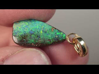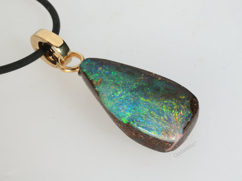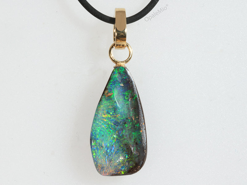 Pendente e charm oro 18k con opale boulder australiano dai riflessi densi a volte brillanti e una grande varietà di colori.