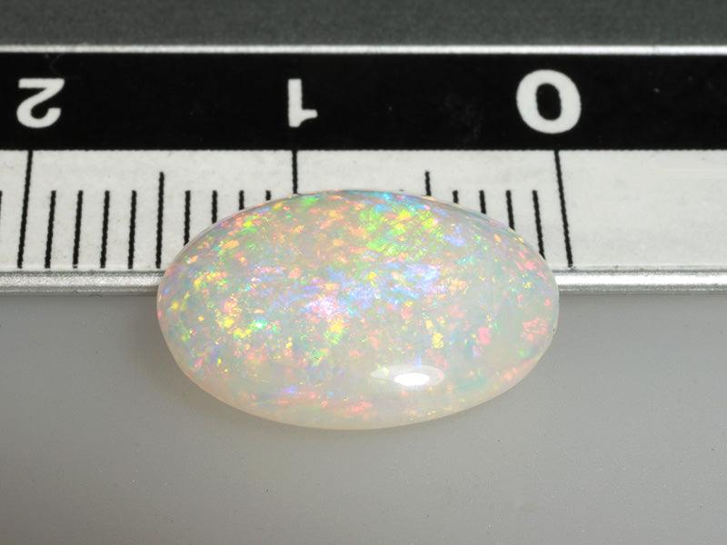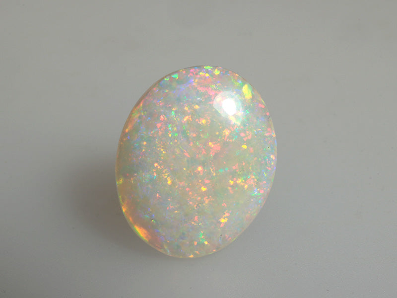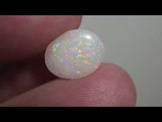 Splendido opale bianco di altissima qualità taglio ovale con un mare di riflessi brillanti e un'ampia varietà di colori che si accendono e spengono sulla gemma.