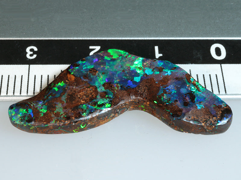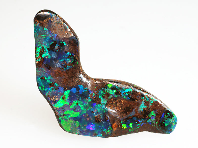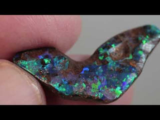 Opale boulder australiano taglio libero dai colori vivi e molto brillanti che sprigionano varie tonalità di blu e verde.