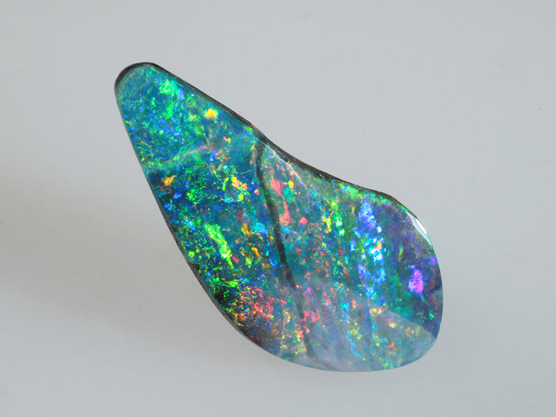 Opale boulder australiano di qualità superiore con un grande effetto visivo. La pietra ha un continuo gioco di colori e riflessi molto brillanti che si evidenziano con il movimento della gemma.