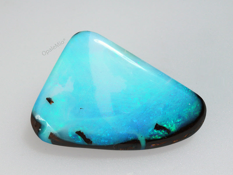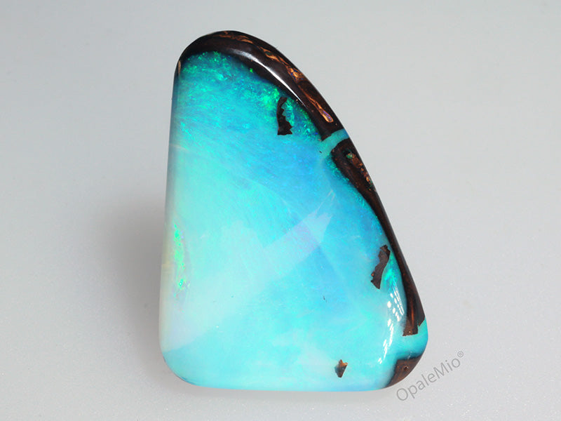 Opale boulder australiano taglio libero con colori che sprigionano varie tonalità di azzurro e zone di piccoli e brillanti riflessi. 460