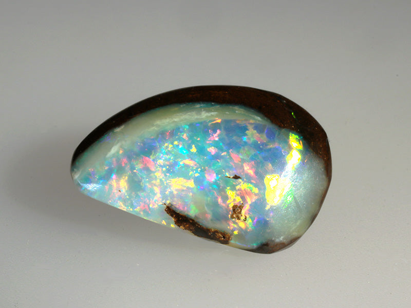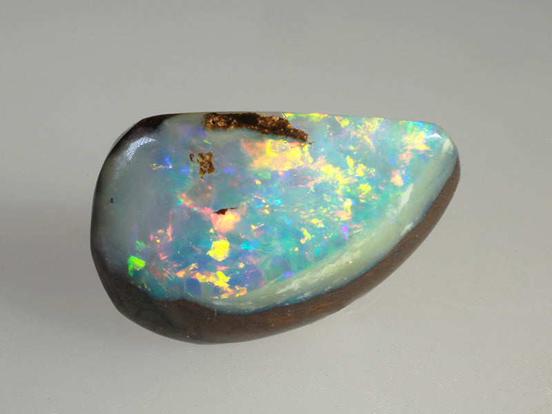 Info: L'opale boulder è caratterizzato da uno strato di opale prezioso che aderisce alla roccia ospite. I colori possono essere estremamente vivi e brillanti, mentre nella classificazione l'opale boulder è identificato con Solido 2. Le miniere di opale boulder sono sparse nell'outback del Queensland (Australia) e forniscono la totalità di questa preziosa gemma.