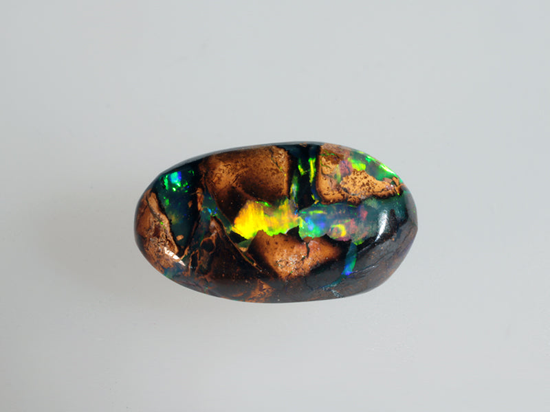 Opale boulder australiano con brillanti venature di colori inensi a volte elettrici.