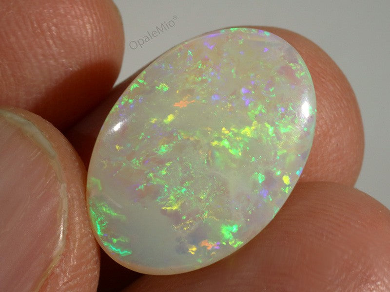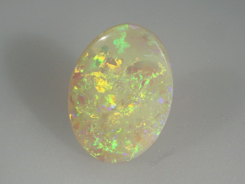 Info: L'opale chiaro o light opal è caratterizzato da uno sfondo opaco o traslucente chiaro e i colori sono molto intensi e brillanti. Nella classificazione della gemma, i toni dell'opale chiaro sono identificati da N8 a N7. Australia, Etiopia e Brasile sono i principali produttori di questa gemma molto preziosa.