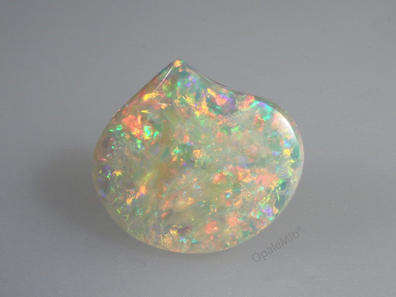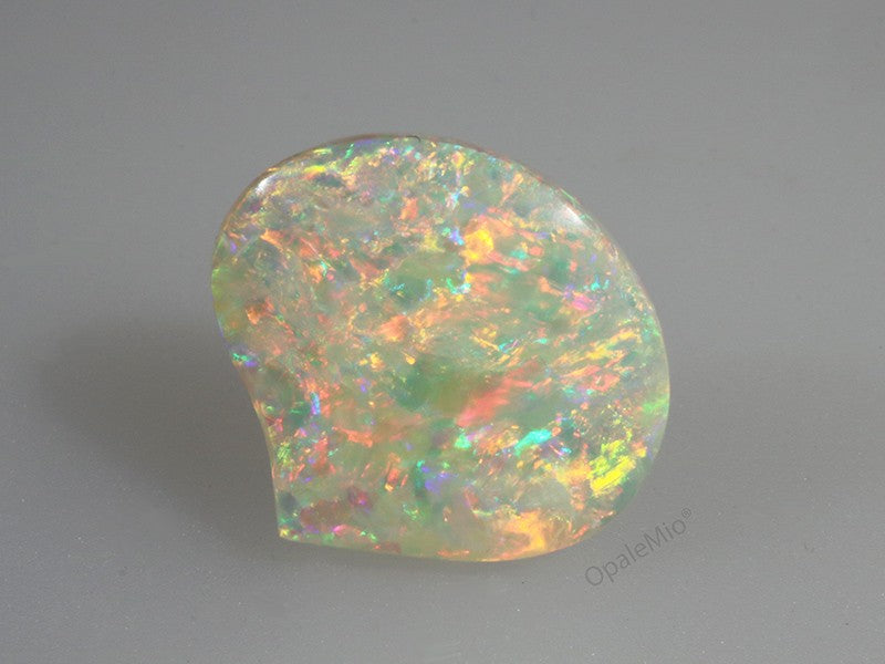 Info: L'opale chiaro o light opal è caratterizzato da uno sfondo opaco o traslucente chiaro e i colori sono molto intensi e brillanti. Nella classificazione della gemma, i toni dell'opale chiaro sono identificati da N8 a N7. Australia, Etiopia e Brasile sono i principali produttori di questa gemma molto preziosa.