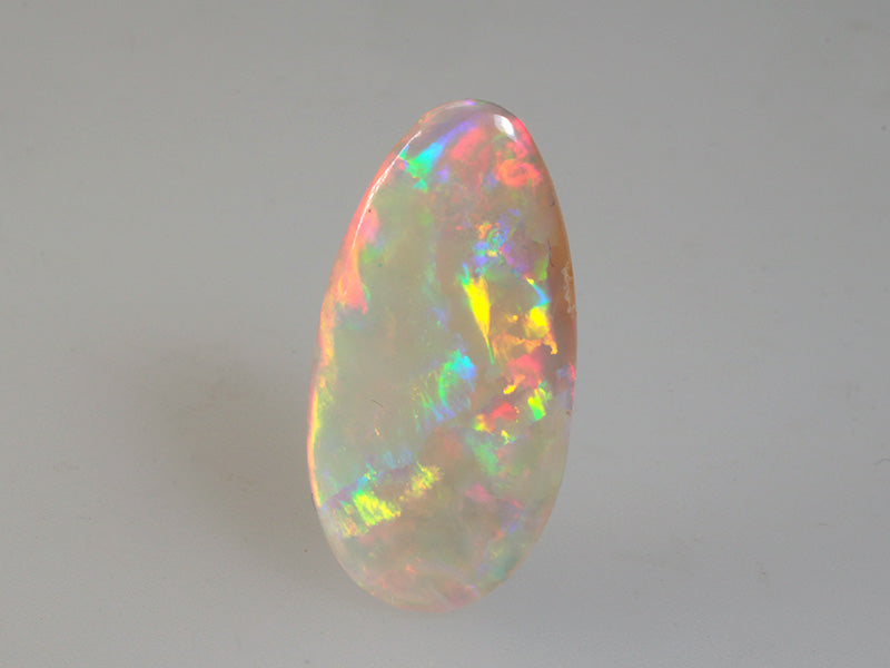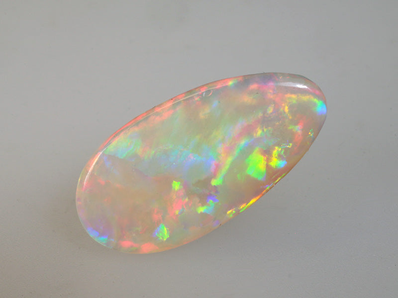 Info: L'opale chiaro o light opal è caratterizzato da uno sfondo opaco o traslucente chiaro e i colori sono molto intensi e brillanti. Nella classificazione della gemma, i toni dell'opale chiaro sono identificati da N8 a N7. Australia, Etiopia e Brasile sono i principali produttori di questa gemma molto preziosa.
