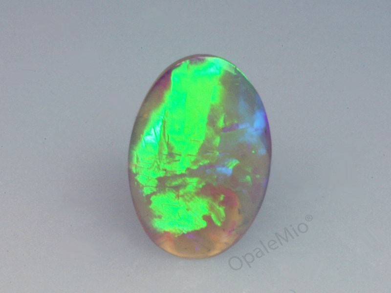 Bellissimo opale chiaro australiano taglio ovale con intensi e brillanti riflessi dove si evidenzia il pattern chinese writing.