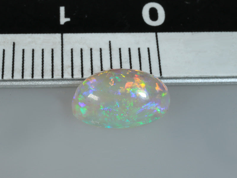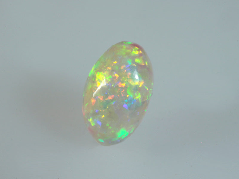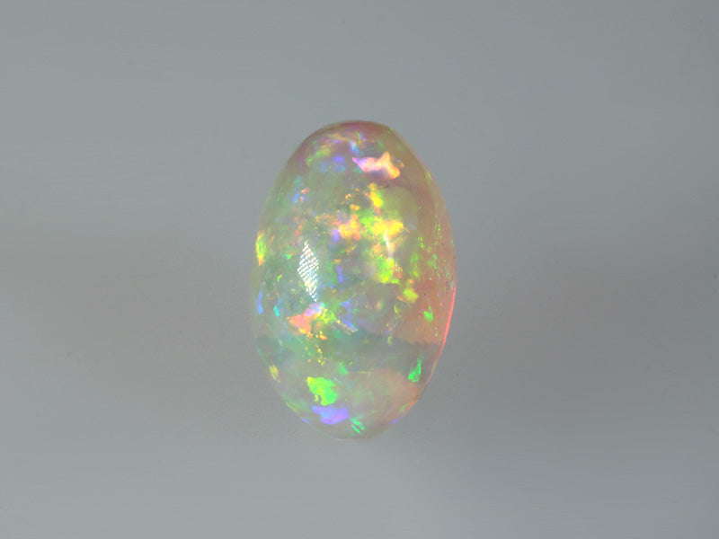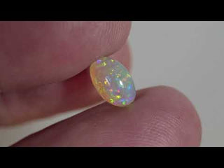 Opale australiano crystal con taglio ovale cabochon alto che presenta colori intensi e vivi che catturano la luce in profondità. La forma e l'altezza del cabochon lo rendono particolarmente adatto per anelli di design, dove la pietra diventa protagonista assoluta.