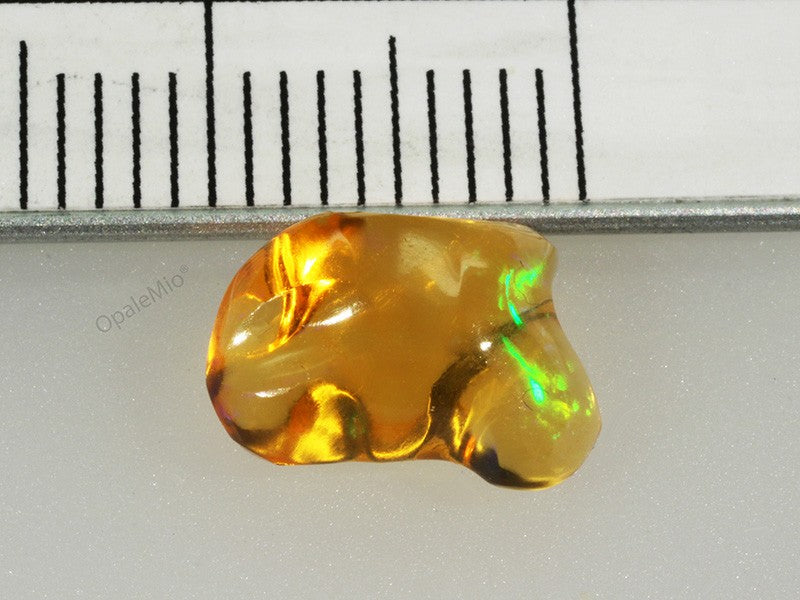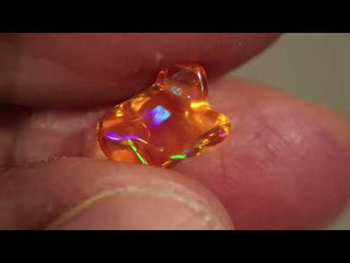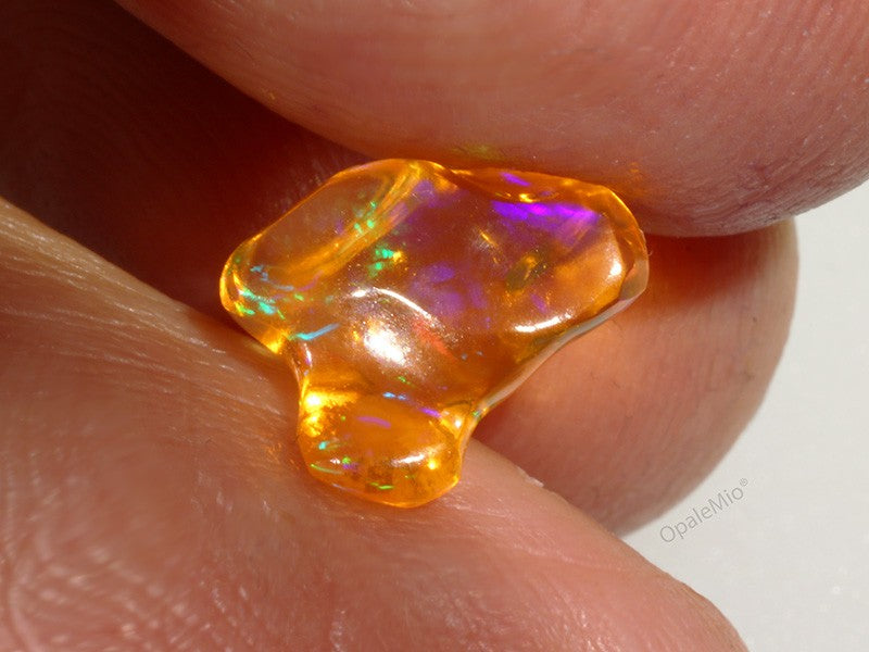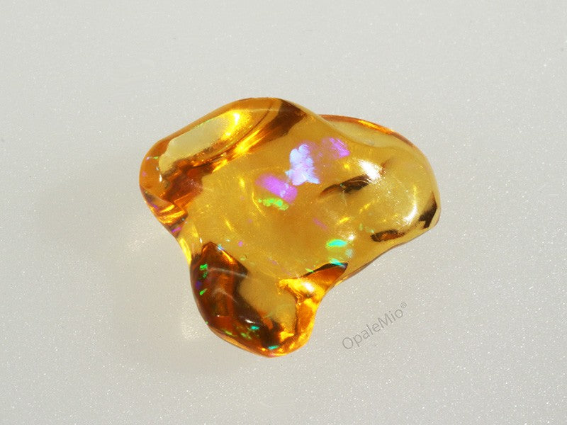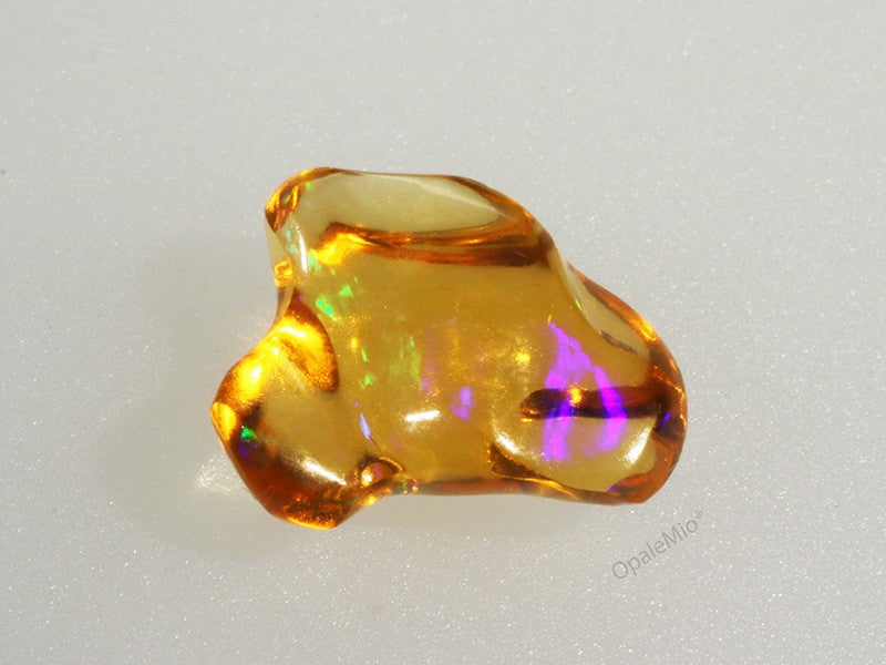 Opale di fuoco messicano taglio libero dai riflessi molto colorati su sfondo arancio sempre molto vivi ed intensi.