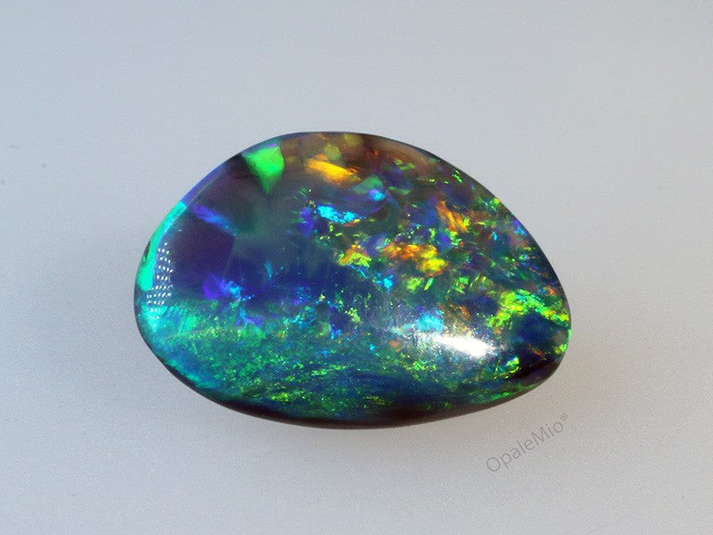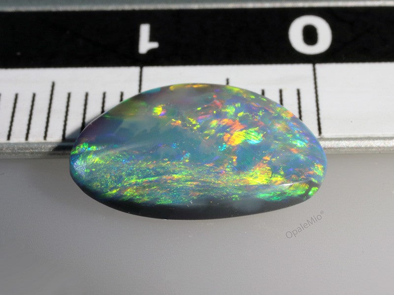 Fantastico opale nero australiano dai riflessi intensi e brillanti e una moltitudine di colori che si sviluppano con il movimento della gemma.