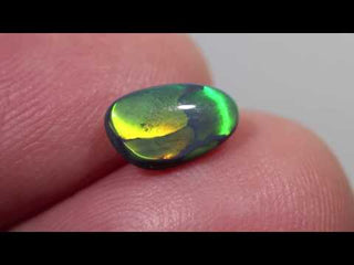 Bellissimo opale nero dai grandi riflessi intensi e colori che si sviluppano con il movimento della gemma, ideale per un anello.