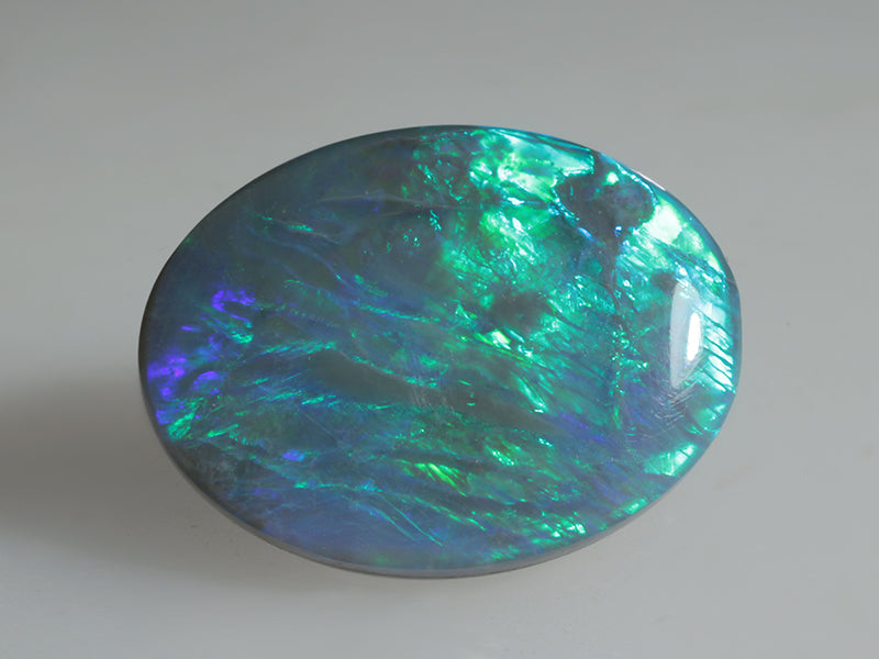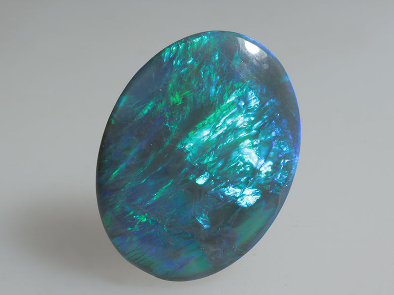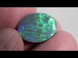 Bellissimo opale nero australiano taglio ovale con un bel gioco di colori con riflessi verdi e blu molto brillanti, ideale per un pendente