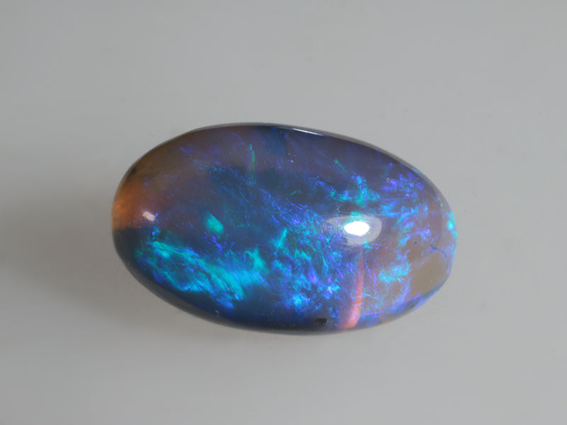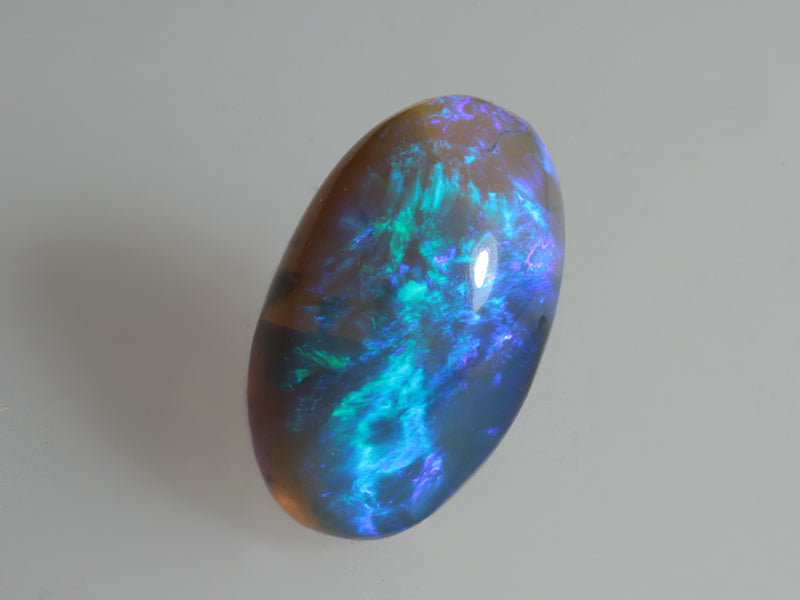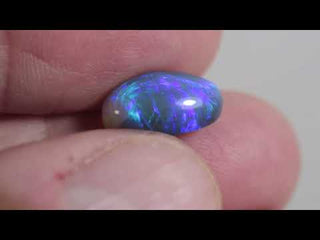 Opale nero crystal australiano taglio ovale cabochon con riflessi verdi e blu molto brillanti specialmente sui lati.