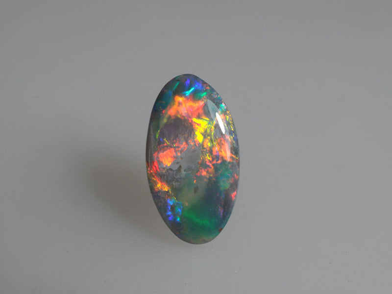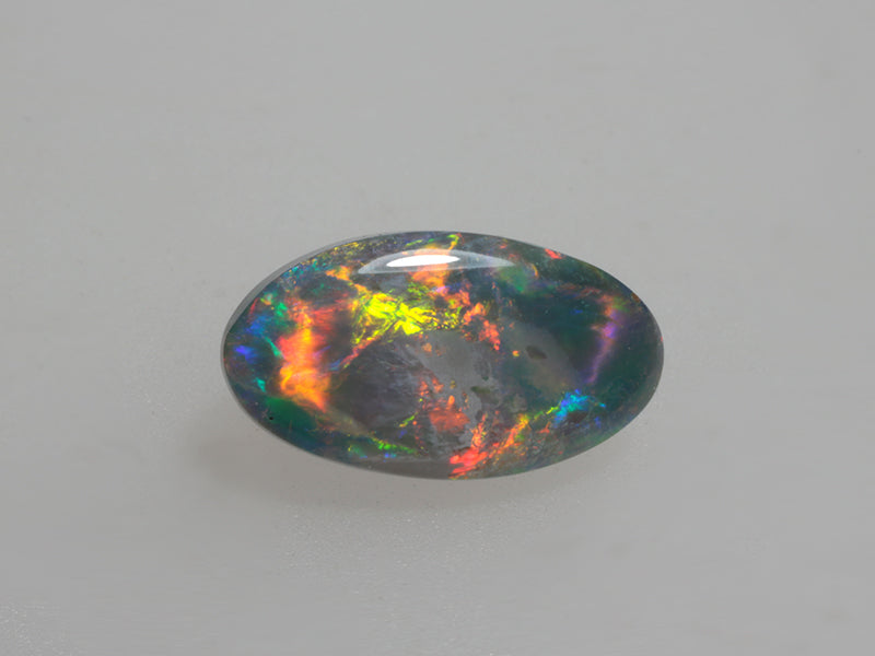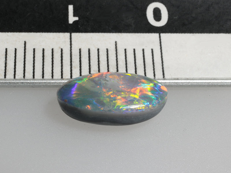 Bellissimo opale nero australiano con un vivace gioco di colori in cui evidenzia anche il rosso, una gemma ideale per qualsiasi gioiello