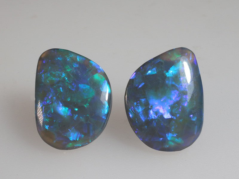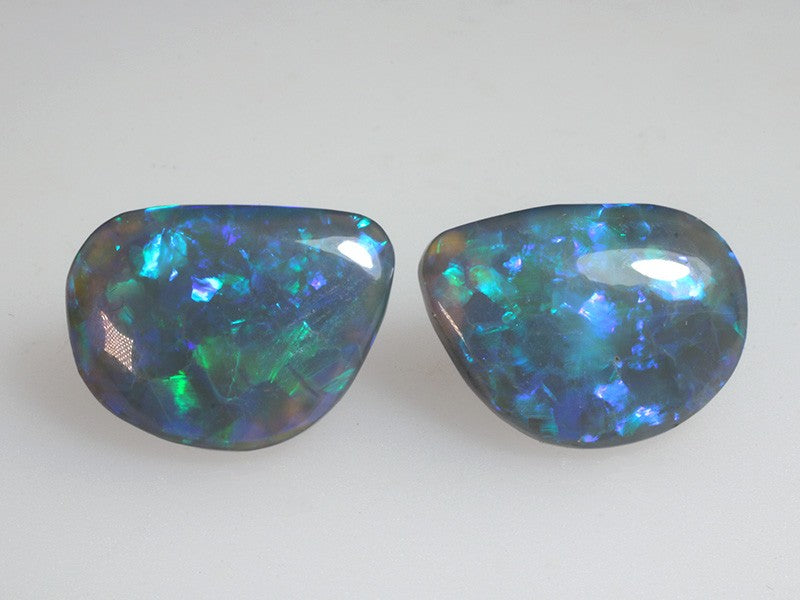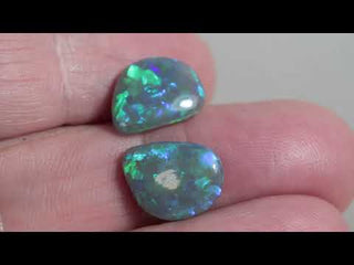 Opali neri australiani dai colori intensi su sfondo scuro che vanno dal verde smeraldo al blu profondo ideali per orecchini