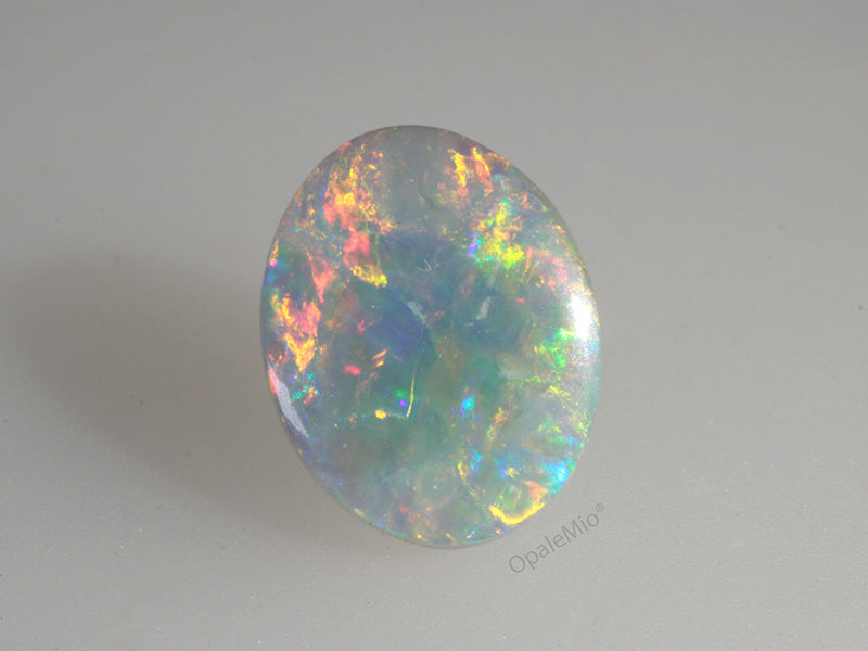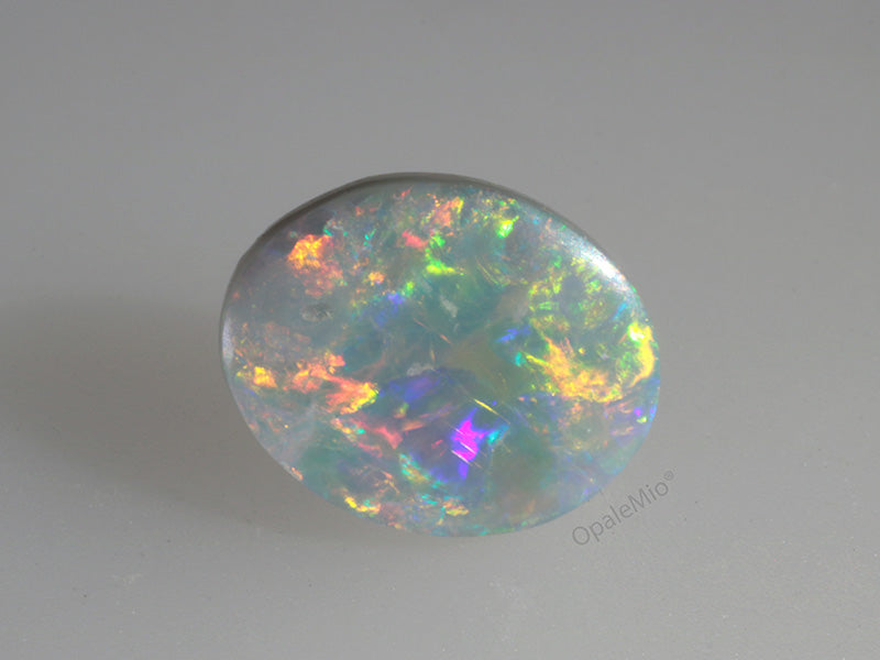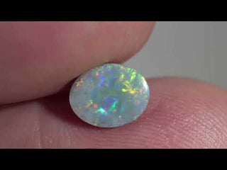 Luminoso opale scuro australiano taglio ovale con un bel gioco di colori e riflessi sempre nuovi che si evidenziano con il movimento della gemma.