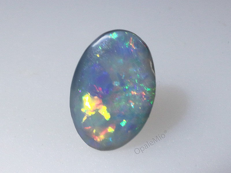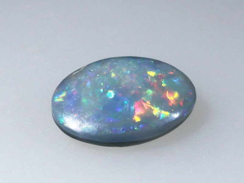Opale grigio australiano, un ovale con piacevole gioco di colori che si accendono sulla gemma