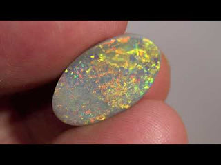 Opale scuro australiano taglio ovale con un intenso gioco di colori e brillanti riflessi che cambiano continuamente con il movimento della gemma.
