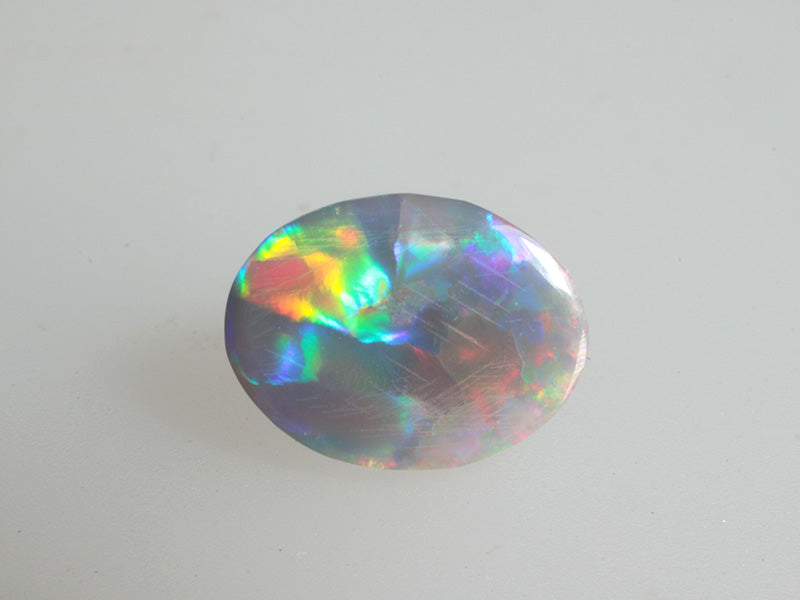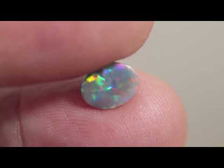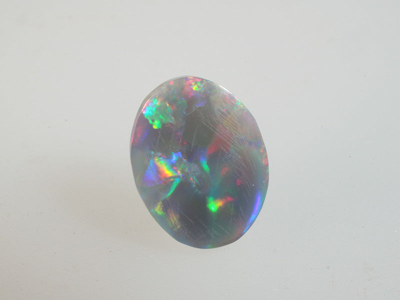Luminoso opale scuro australiano taglio ovale con un bel gioco di colori e riflessi sempre nuovi che si evidenziano con il movimento della gemma.