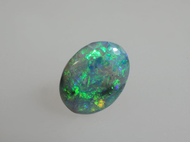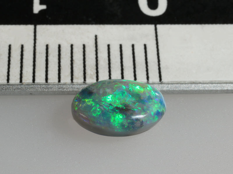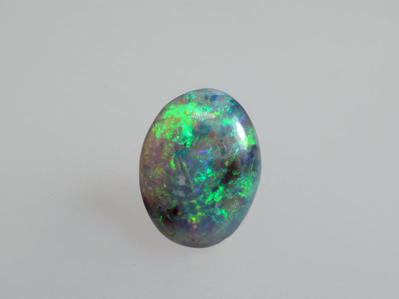 Piccolo opale scuro taglio ovale con colori densi ed intensi che si animano con il movimento della gemma.