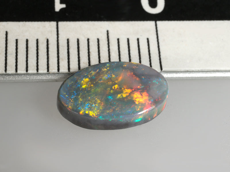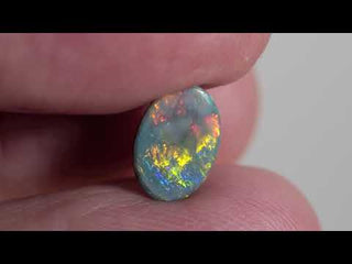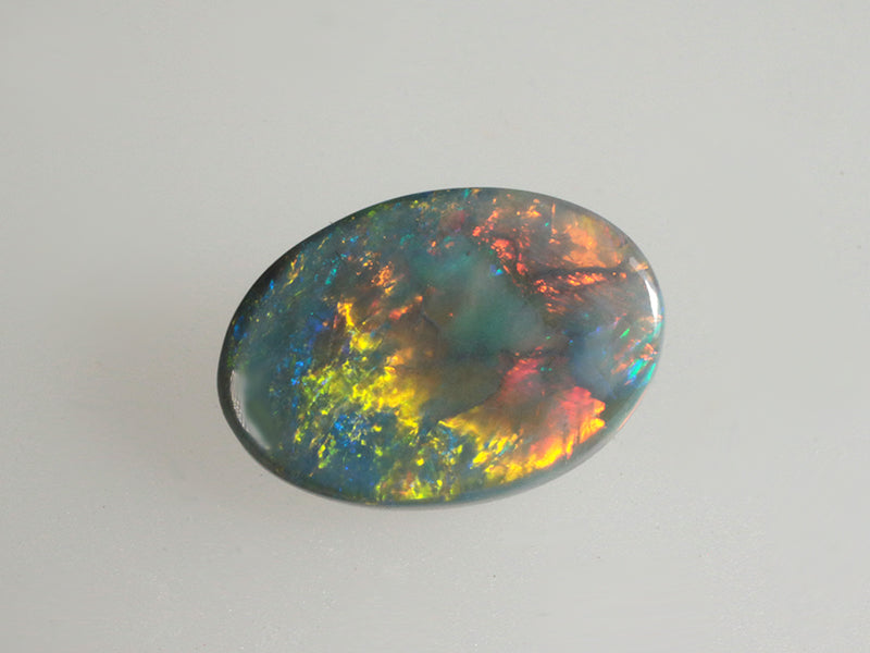 Opale semiblack australiano taglio ovale dai vivaci riflessi multicolore, una gemma ideale per un anello o un pendente.
