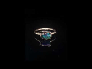 935 silver ring with Australian boulder opal featuring extraordinary blue and green highlights. The ring's minimalist design highlights the gem's natural beauty, creating a statement piece ready for everyday wear. Size 16 (IT). Argentium does not oxidize and is hypoallergenic.