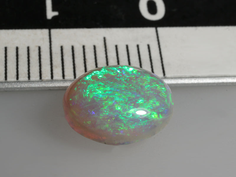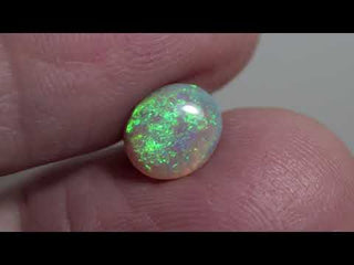 Bellissimo opale australiano taglio ovale cabochon per massimizzare la luminosità intrinseca della pietra. I riflessi verdi, che si declinano in una ricca gamma di sfumature, catturano la luce con brillantezza affascinante