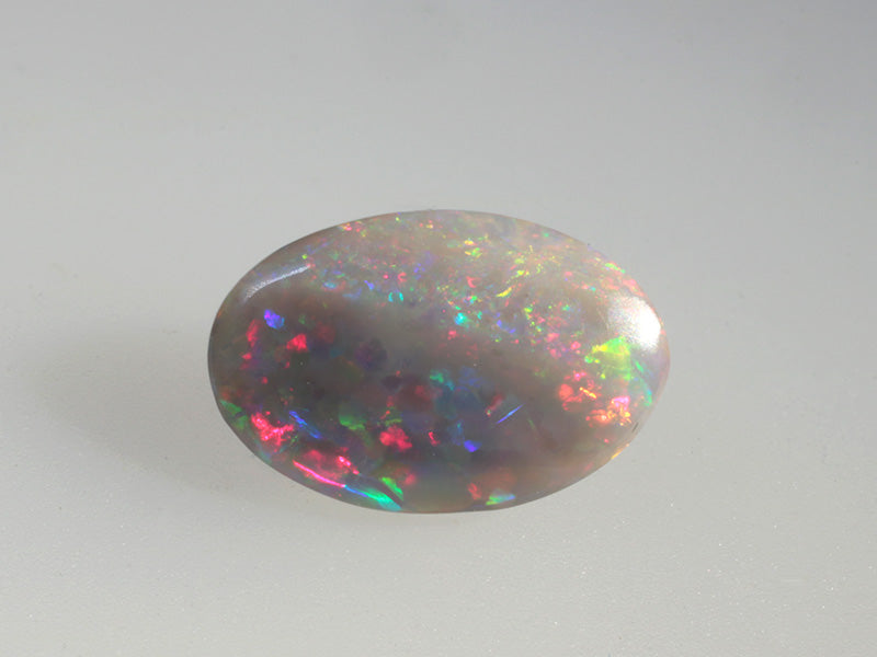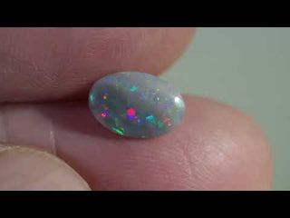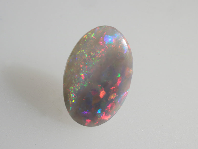 Oval cut Australian dark opal with a pleasant play of colors and reflections that continuously change with the movement of the gem.