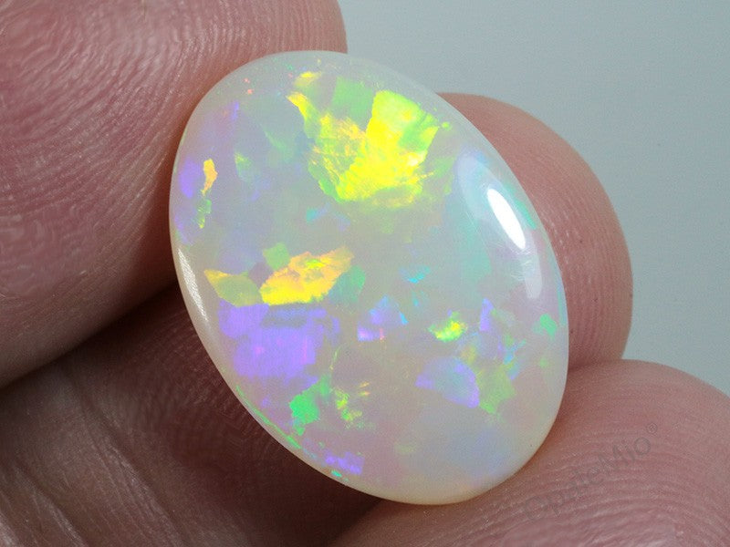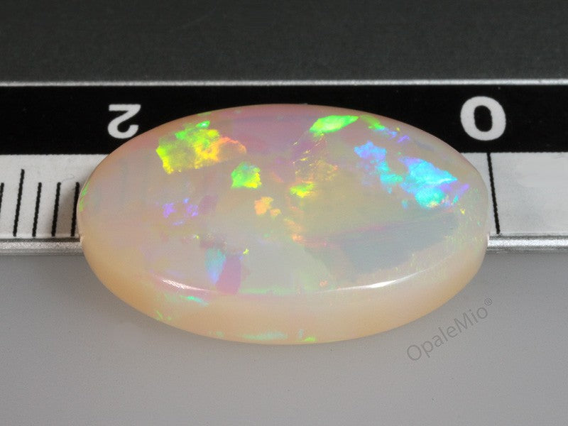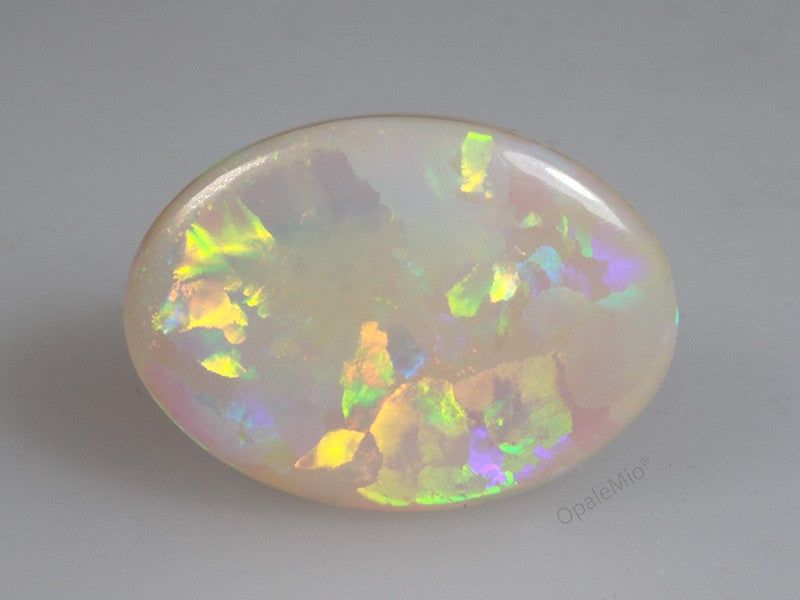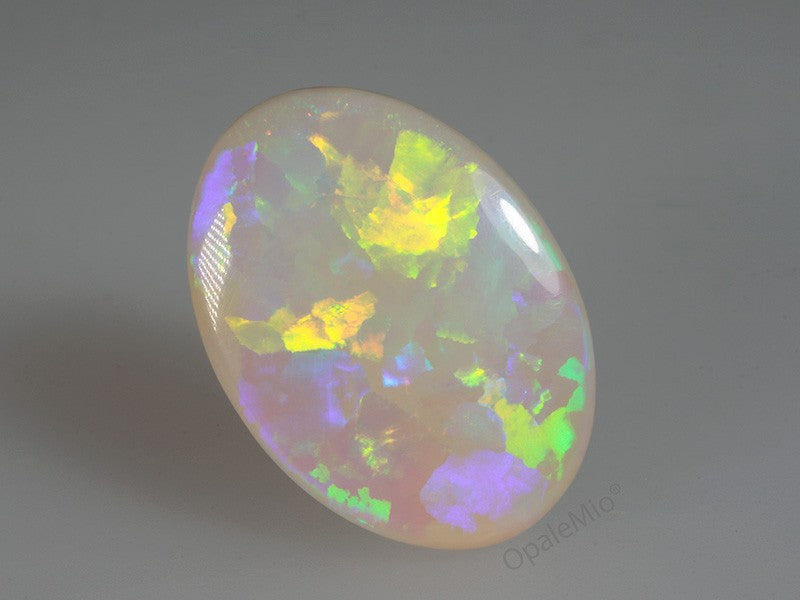 Info: L'opale chiaro o light opal è caratterizzato da uno sfondo opaco o traslucente chiaro mentre i colori possono essere molto intensi e brillanti. Nella classificazione della gemma, i toni dell'opale chiaro sono identificati da N8 a N7. Australia, Etiopia e Brasile sono i principali produttori di questa gemma molto preziosa.